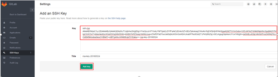 把生成出来的public key复制粘贴到gitlab上面,配置ssh key。