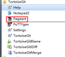 打开:开始-->tortoisegit-->pageant,打开以后右下角会有图标,双击点开蓝屏幕电脑那个图标