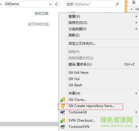 创建一个文件夹gitdemo,然后右键--git create repository here...