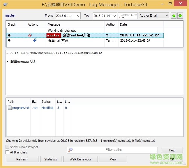tortoisesvn 则是2段式,中间没有暂存借点,所以提交就是到远程代码库。