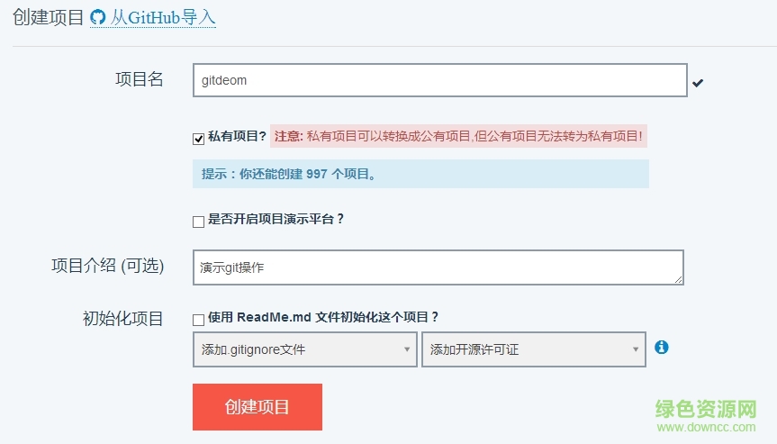 6.1:在oschina上新建一个项目,进入oschina-->git@osc-->新建项目