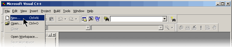 1. 启动 VC6,点击菜单 File -> New...,打开 New 对话框:
