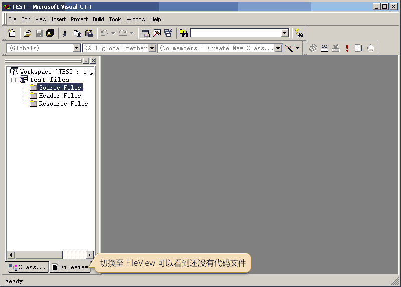 5. 创建项目完毕,在 FileView 选项卡里可以看到项目里面没有任何文件: