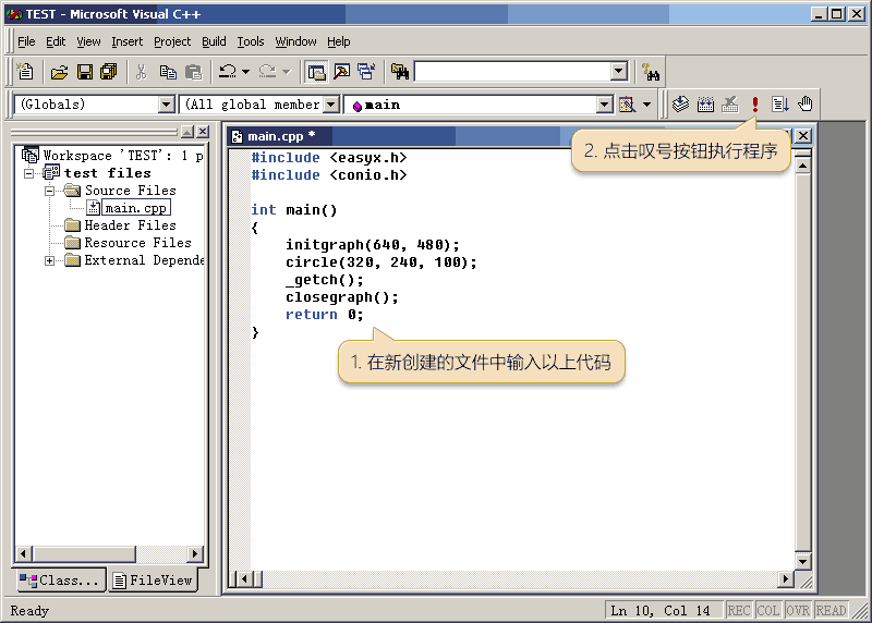 在 VC6 的控制台程序中使用 EasyX,