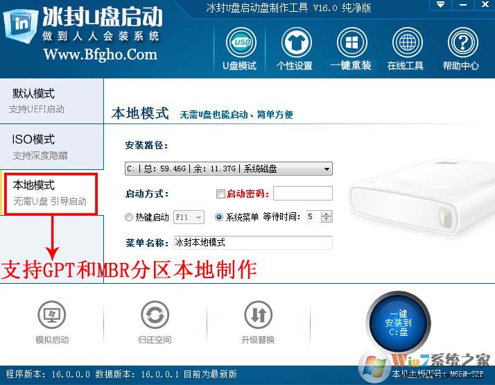 5、优化本地模式制作代码 可在MBR分区或者GPT分区上面进行制作。