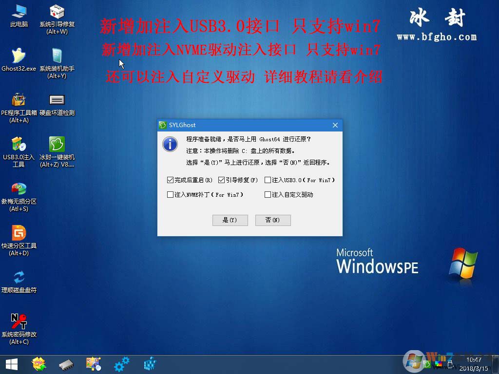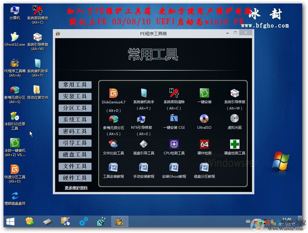 而且把镜像放在GHO目录 进PE后 桌面会自动弹出冰封一键装机