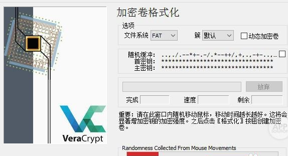 点击格式化。注:点击格式化前要随机移动鼠标,以加强加密强度。
