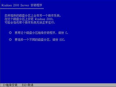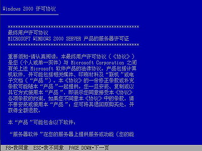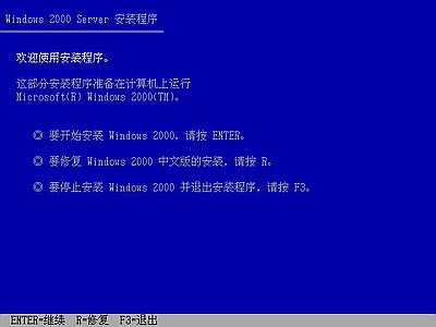 (如果你已经知道方法请转到下一步),将2000安装光盘放入光驱,重新启动系统并把光驱设为第一启动盘,保存设置并重启,如无意外即可见到安装界面: