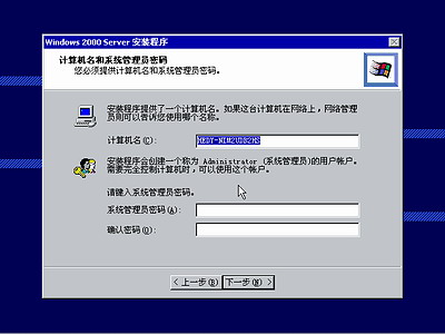 计算机名称自己任意输入默认作为服务器名,输入两次系统管理员密码,请记住这个密码,登陆时用。