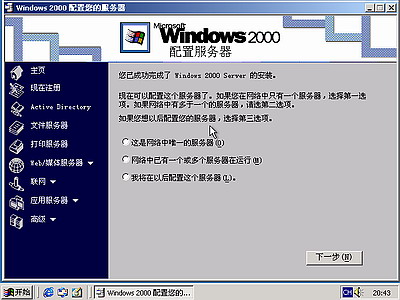 在这里你可以根据需要任选一项,想配置成服务器选第一项,配置成工作站选第二项(同Windows 2003一样),选择后按“下一步”。