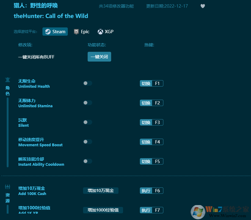 1、下载GameBuff_xtzj7.exe后请先进行安装,然后搜索“猎人:野性的呼唤”游戏;2、使用前先退出杀毒软件井关闭Windows Defender