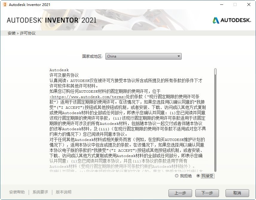 4.查看相关的许可协议,点击接受许可协议,进入下一步
