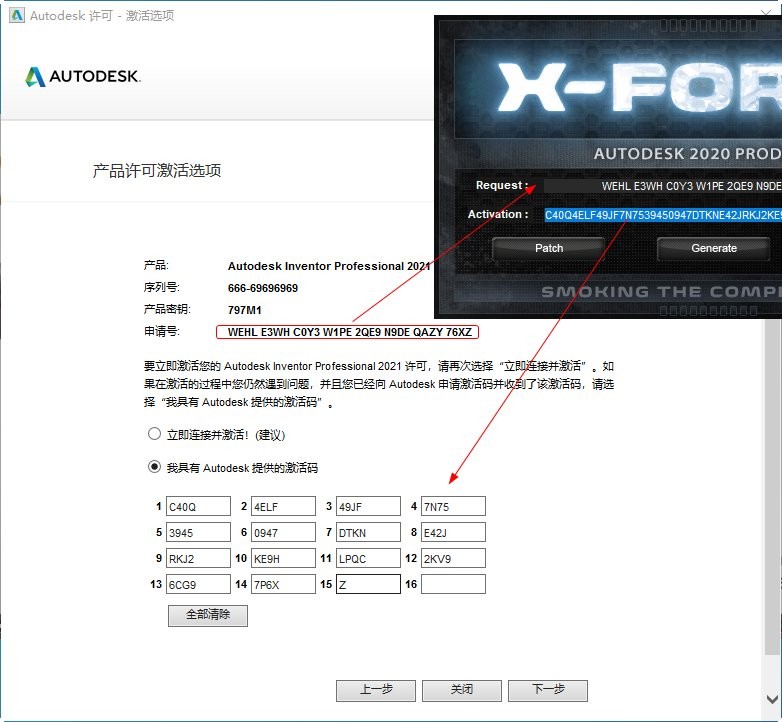 8、以管理员身份运行注册机,将申请号复制到注册机,点击pathc,点击generate,生成激活码,将激活码复制到软件激活页面,点击下一步,如winwin7分享的图片: