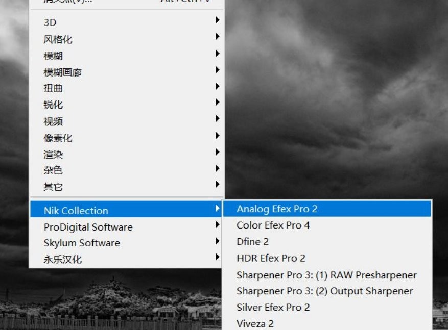 选择滤镜菜单里的nik collection选项即可打开使用。