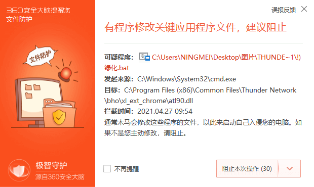 2.等待一会,过程中360安全卫士等杀毒软件会提示“有程序修改关键应用程序文件,建议阻止”,选择“允许程序所有操作”,并勾选不再提示,建议安装前关闭360,建议安装前关闭360,建议安装前关闭360!