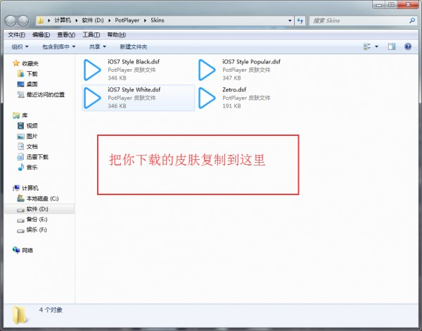 把下载的皮肤复制到默认皮肤文件夹,如winwin7分享的图片: