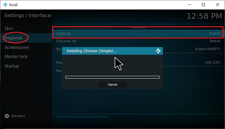 4.上面选择选择完成后,然后进入Regional-Language,把English改成Chinese(simple),等待一会,就变成中文的了,如WinWin7小编分享的图片: