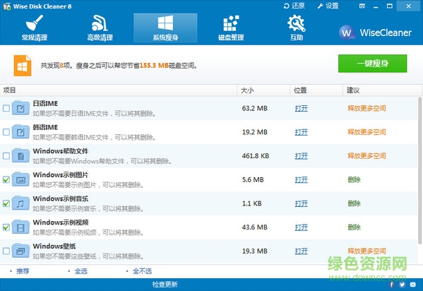 Wise Disk Cleaner是一款专业的磁盘清理工具,提供常规清理、高级清理、系统瘦身等多种功能,快速清理磁盘中的垃圾,释放空间,也有利于加快电脑的运行速度。