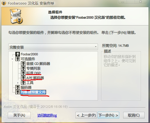 图4.这个是中文原版安装包中安装过程图,建议选上APE解码器和划红线的