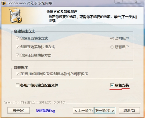 图5.标准安装和绿色安装按自己需求来,绿色安装是不写进注册表的,当有多个foobar在使用或者在尝试一个新的配置时选绿色安装。
