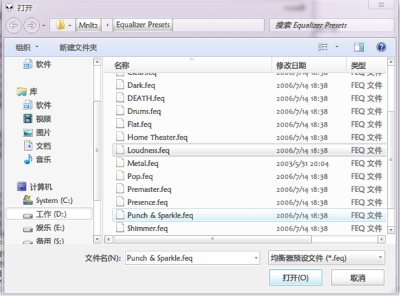PS:预设文件一般在foobar程序文件夹的Equalizer Presets文件夹了,若无此文件夹,可以去下载。一般原因是你下的懒人包没有这些配置文件或者你在安装程序包时没有选中”均衡器配置文件“,可以自己去尝试调下均衡器,调一个自己听得惯的保存起来。