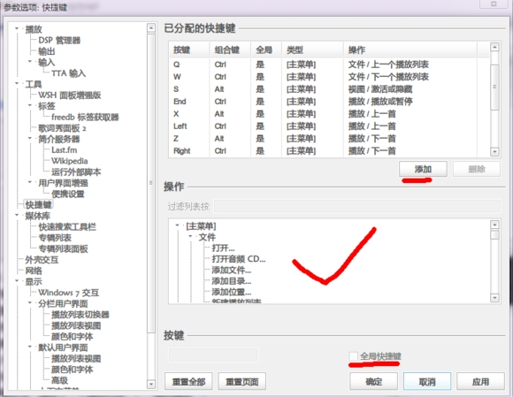 8、Foobar2000所有菜单的选项和命令可以通过组合键来完成,并且可以由最终用户进行重新排列整理