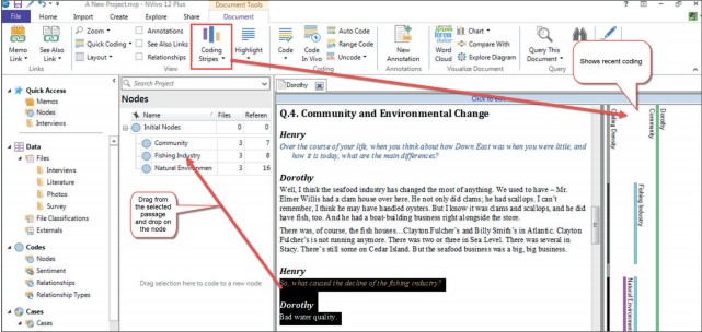 打开文本,单击Coding Stripes并选择Recent Coding以查看您在编码时编码了什么。有以下两种不错的方法可以在NVivo中进行编码: