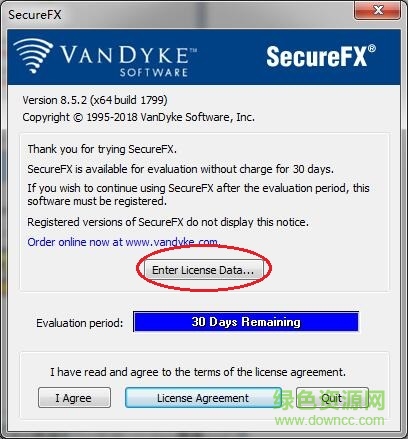 1.打开SecureFX软件,选择“ok”,然后点击中间的“Enter License Data”,如下图winwin7分享的图片: