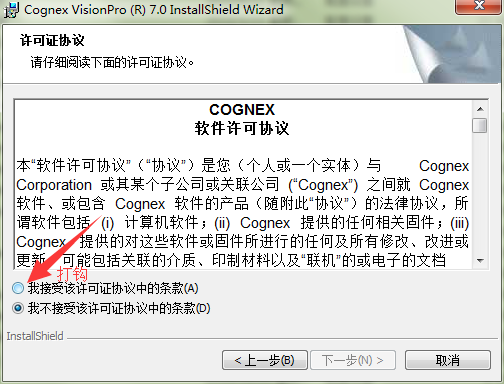 4、选择接受许可协议,然后点击下一步,如winwin7给大家分享的图片: