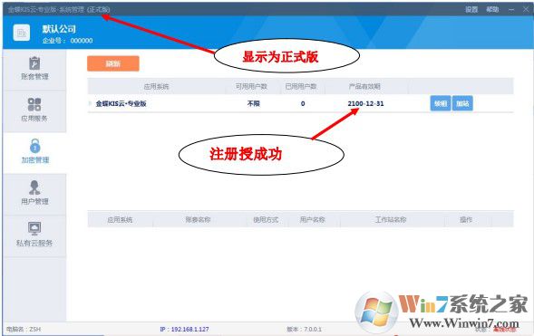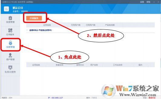 6、启动金蝶KIS专业版-系统管理,在加密管理界面点开通服务选择我提供的license.dat授权文件