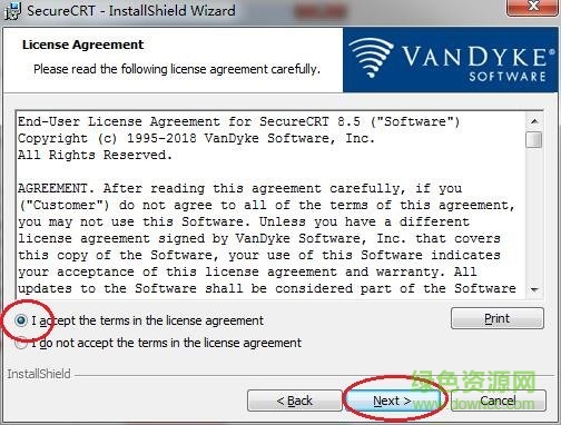 2.开始安装后,第一个界面直接点“next”,就不截图演示; 然后,勾选“I accept the in the license agreement”,点击“next”,如winwin7小编分享的图片所示: