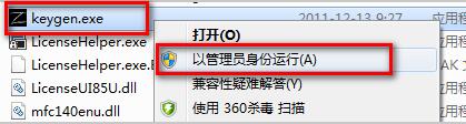 2.右键选择“以管理员身份运行”打开注册机,如winwin7小编分享的图片所示: