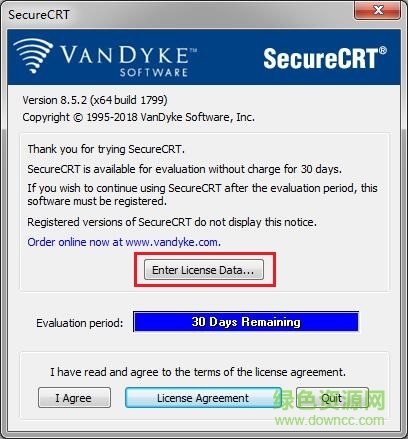 5.运行SecureCRT,会提示要注册,点“ok”,接着选“Enter license Data”,如winwin7小编分享的图片所示: