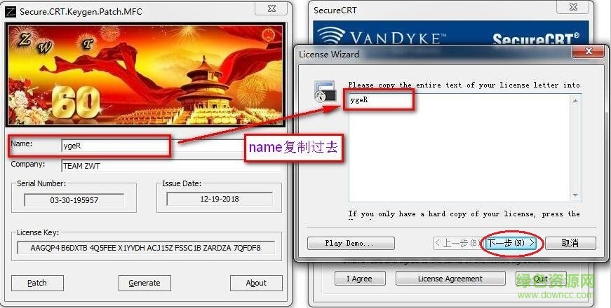 6.将注册机中“name”信息复制到软件界面中(如图),然后点“下一步”,如winwin7小编分享的图片所示: