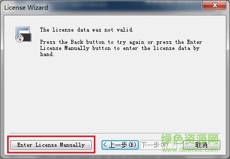 7.会提示什么注册错误,也就是下图的提示,点击“Enter license Manually”,如winwin7小编分享的图片所示: