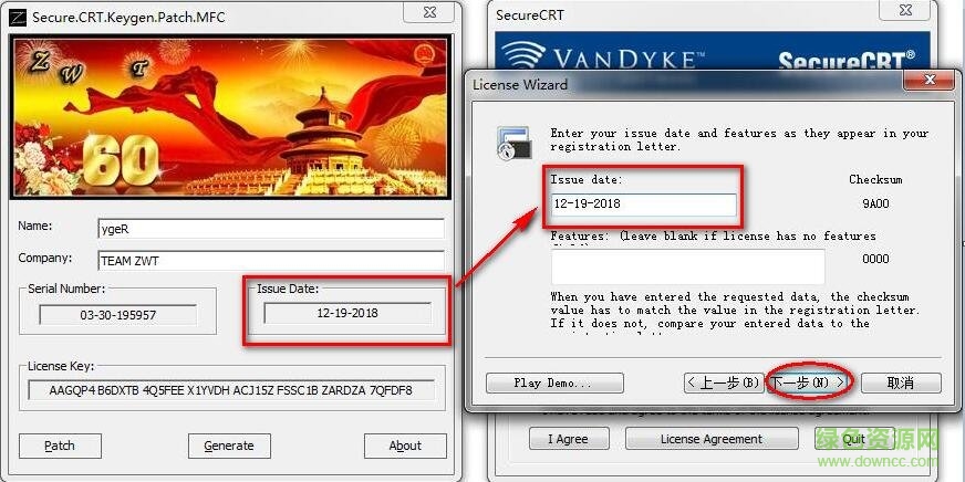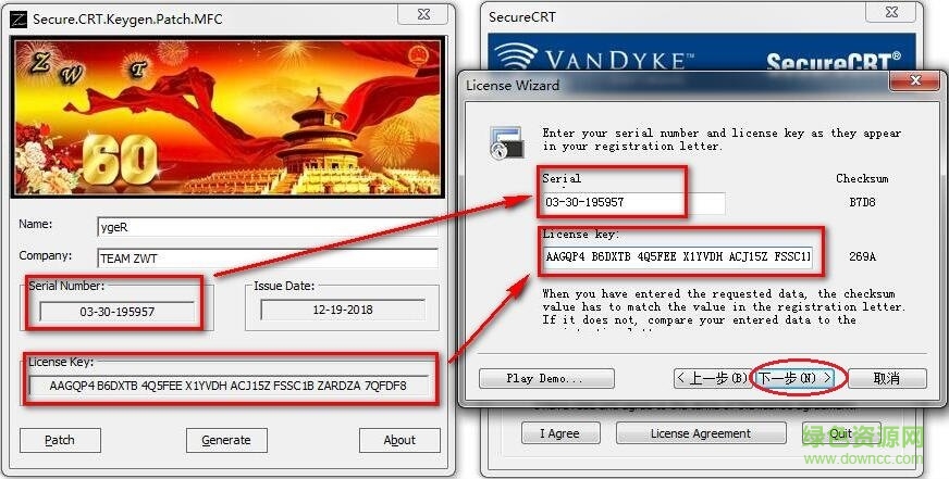 9.再将注册机中的Serialmumber和License key复制到软件对应框中去,继续“下一步”,如winwin7小编分享的图片所示: