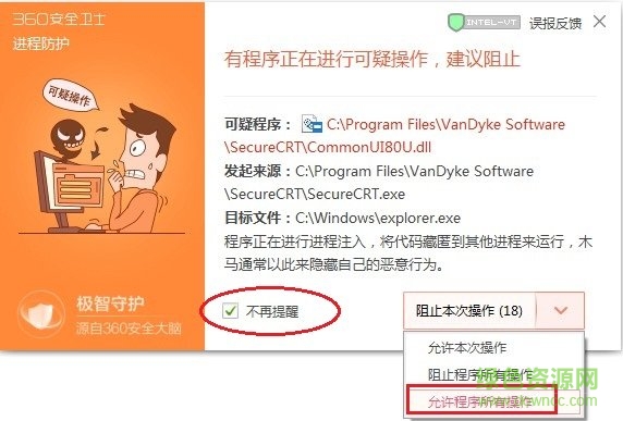 12.上面操作完成后,软件会自动运行,可能会有杀毒软件误报,选“运行程序所有操作”即可,如winwin7小编分享的图片所示: