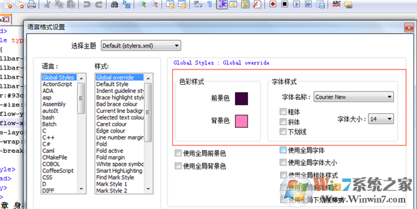 2、选择语言格式设置后将进入设置界面,在这里我们可以设置语言种类、呈现样式、颜色等信息。请根据自己喜好进行设置。