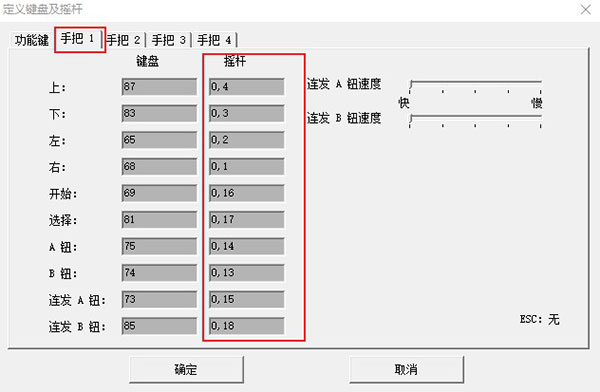 进入到定义键盘及摇杆界面,如图所示,我们可以对功能键、手把进行设置,这里只需要按照自己的需要来设置就行了;