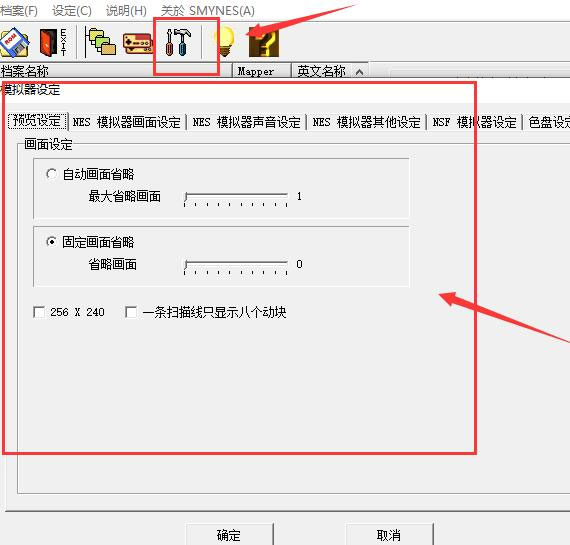 还可以看到下方图中的设置图标,点击后就能进入模拟器设定界面,如图所示,你可以进行预览设定、画面设定、声音设定、色盘设定等选项,可以按照自己的需要来进行设置;