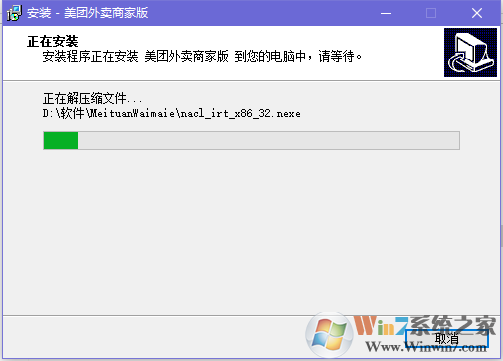 4、美团外卖商家版正在安装当中,过程很快,请耐心等候