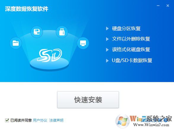 2、打开文件ShenDuHuiFu_DNGJ8.1.4.exe,进入安装程序,点击快速安装。