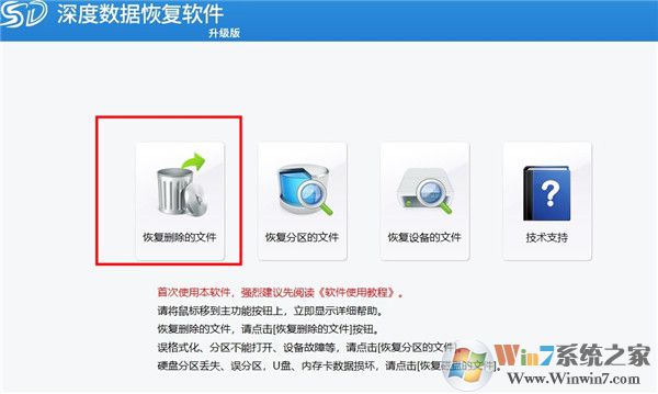 1、进入主功能界面,点击主界面上的"恢复删除的文件"功能按钮。