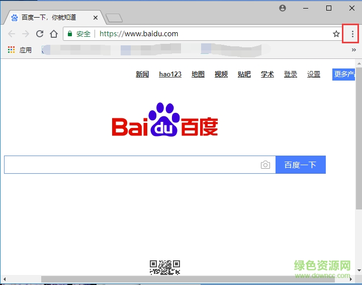1.首先在绿色资源网下载安装好谷歌浏览器,然后我们在桌面找到软件的快捷方式鼠标双击打开进入软件主界面,接下来我们点击界面右上角的三个点标志,如下图所示。