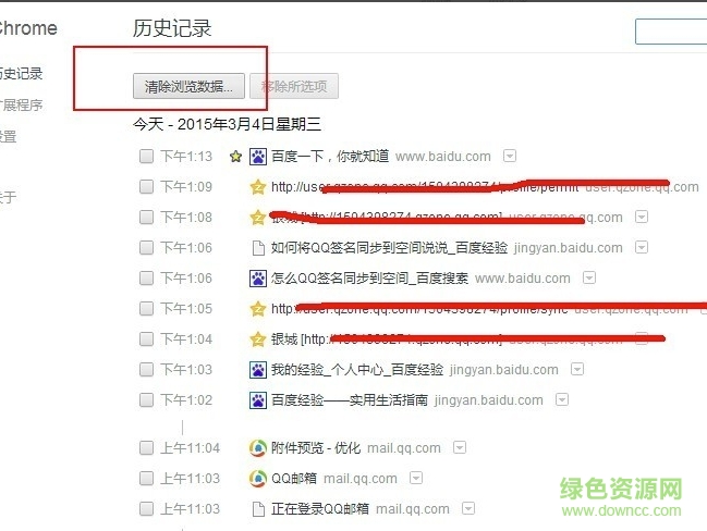 3.进入到历史记录界面,如下图所示,在界面上显示的就是今天的浏览数据,我们可以点击界面上方的“清除浏览数据”选项,然后进入下一步。