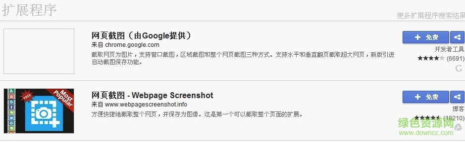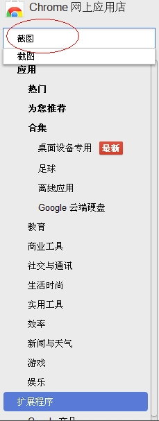 4.我们在Google应用商店的左侧搜索框中输入想要的软件,比如输入截图选项,这样在界面的右侧就会出现很多截图选项的扩展程序,如下图所示。