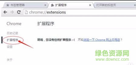 2.接下来我们按照问题三中的步骤打开谷歌浏览器中的扩展程序,如下图所示,我们点击界面左侧的扩展程序选项,然后进行下一步。