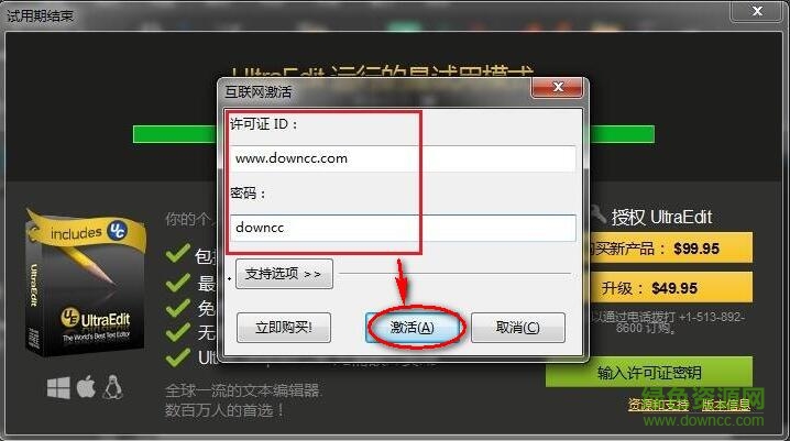 5.将验证码和许可证id,以及密码填入,然后点击”激活“按钮,就会提示”注册/激活成功“