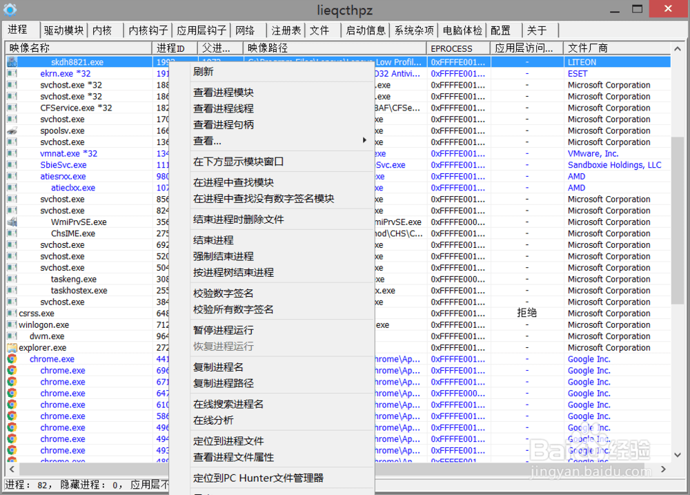 3.所有的功能都在右键中,可以刷新,结束进程等