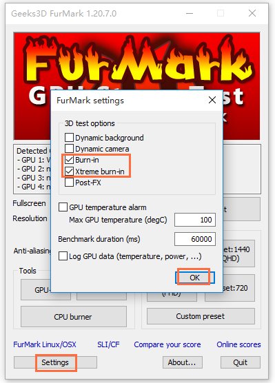 需要注意的是,使用furmark进行烤机会对电脑gpu造成物理伤害!